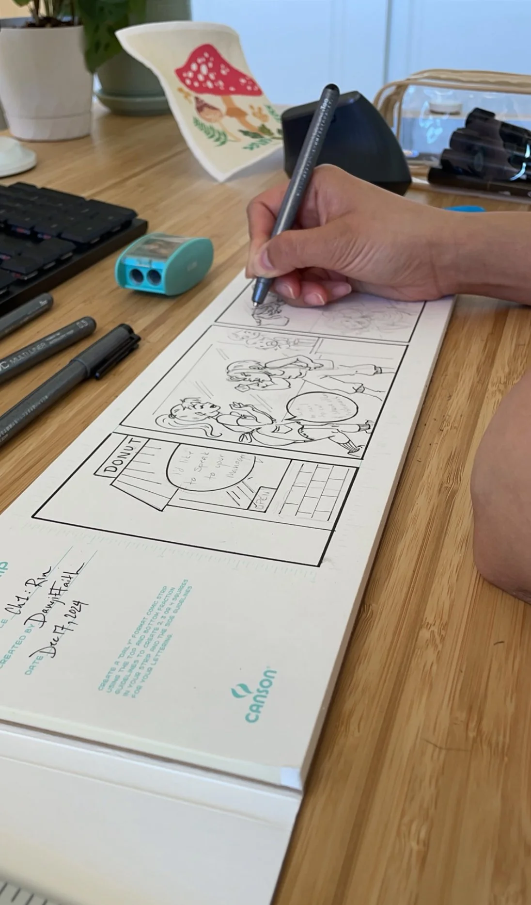 I’m using these daily comic sheets. Something about the guidelines and me drawing boxes really keeps me feeling motivated and productive. I also like outlining the boxes for each panel. Makes me feel legit 🤭