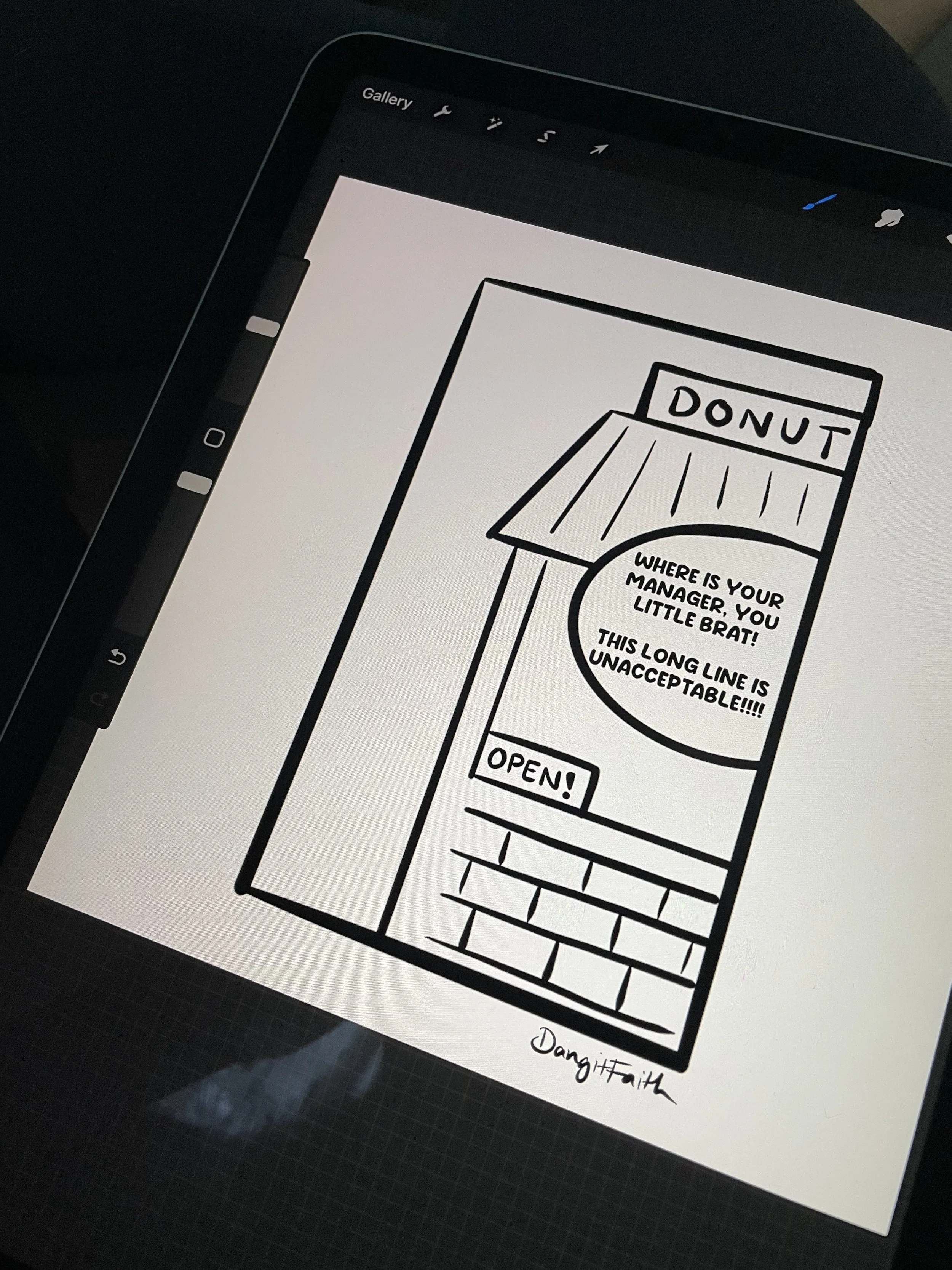 Eventually I do have to trace the inking again via Procreate. That’s where the satisfaction comes in! To see the smooth lines and even color gives me that proud moment.